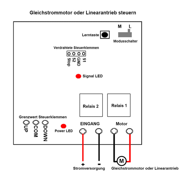 Wenn Sie einen 12V / 24V Gleichstrommotor oder einen Linearantrieb steuern möchten, machen wie folgende: