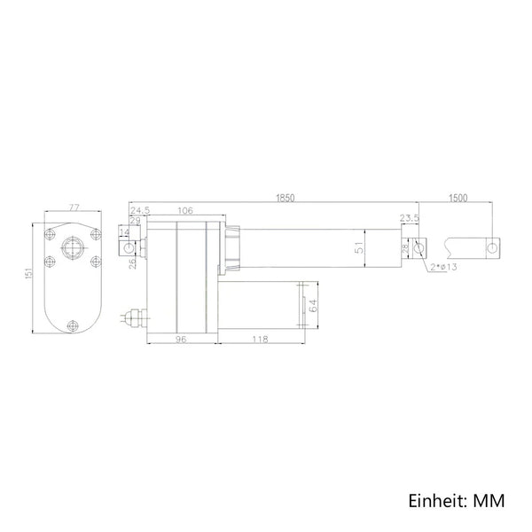 Betriebsgeräusch: ca. 56dB~66dB (Linearantriebe mit unterschiedlichen Parametern haben unterschiedliche Geräuschpegel.)