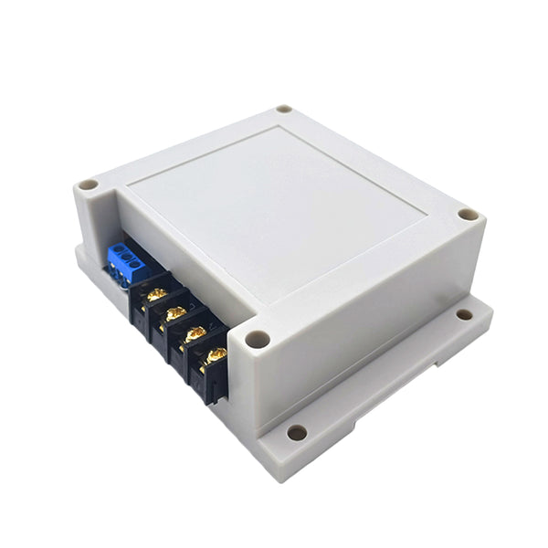 Dieser Empfänger ist eine drahtlose Steuerung für einen Gleichstrommotor oder einen Linearantrieb. Er und die Fernbedienung bilden ein drahtloses Senderempfängersystem. Wenn Sie einen Gleichstrommotor an diesen Empfänger anschließen, können Sie den Motor mit der Fernbedienung in positiver oder umgekehrter Richtung drehen. Wenn Sie einen DC Linearantrieb an diesen Empfänger anschließen, können Sie den Linearantrieb mit der Fernbedienung zum Ein oder Ausfahren betätigen. Sie können auch zwei Endschalter an den Empfänger anschließen und damit den Motor oder den Linearantrieb stoppen.