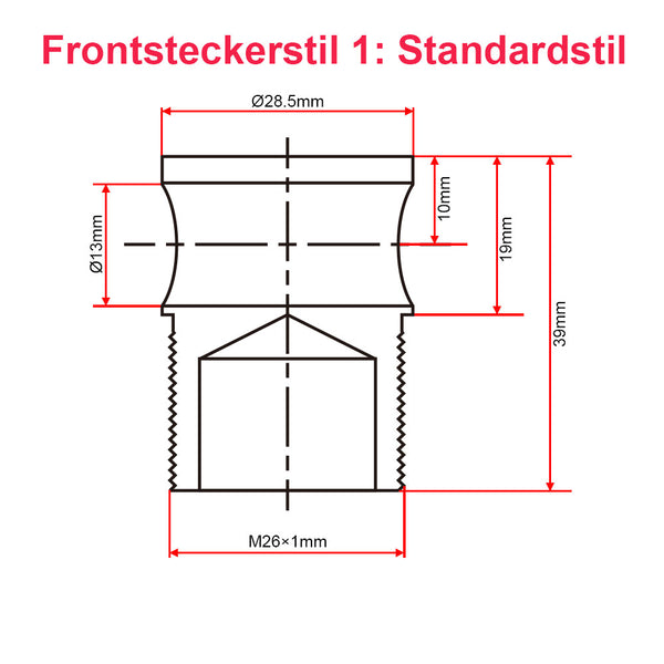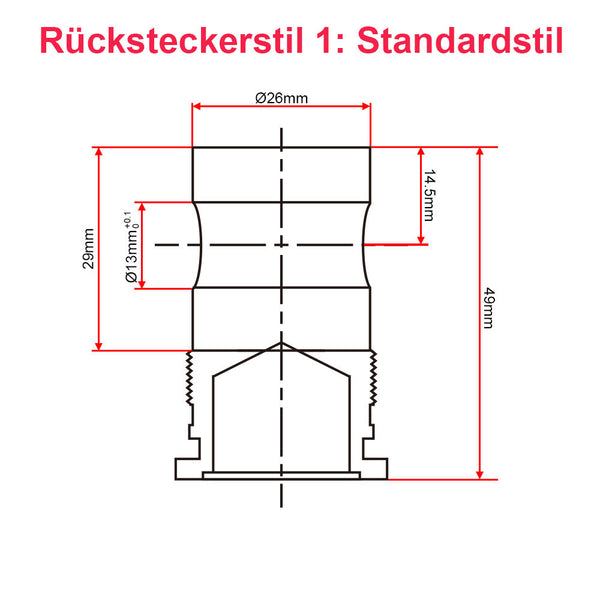 Der Durchmesser der Befestigungslöcher für die Front- und Rücksteckverbinder: 13mm