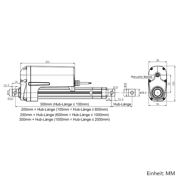 Betriebsgeräusch: ca. 65dB~80dB (Linearantriebe mit unterschiedlichen Parametern haben unterschiedliche Geräuschpegel.)