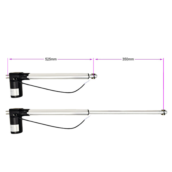 Einzugslänge: Wenn der Linearantrieb vollständig eingefahren ist, beträgt der Mittenabstand zwischen den beiden Montagelöchern 525 mm.